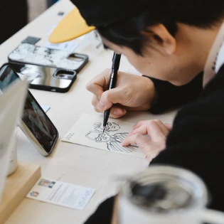 ポートランドでコーヒーのおいしさに感動し、バリスタの似顔絵をテイクアウトカップに描いたのをきっかけに、世界中を旅しながらカフェやスタッフの姿を描く活動を続けている。