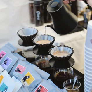 イベント当日、特設会場内チケット売り場にてチケットをご提示いただくと「珈琲飲み比べ試飲セット」と引き換えいたします。