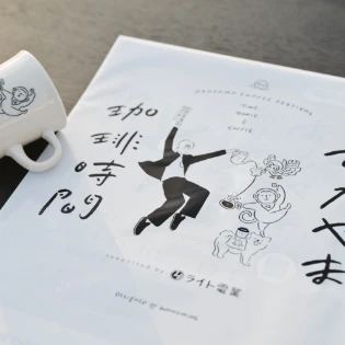 「おかやま珈琲時間」のメインビジュアルや「飲み比べ試飲セット」のデミカップ、イベント限定グッズの制作も担当。